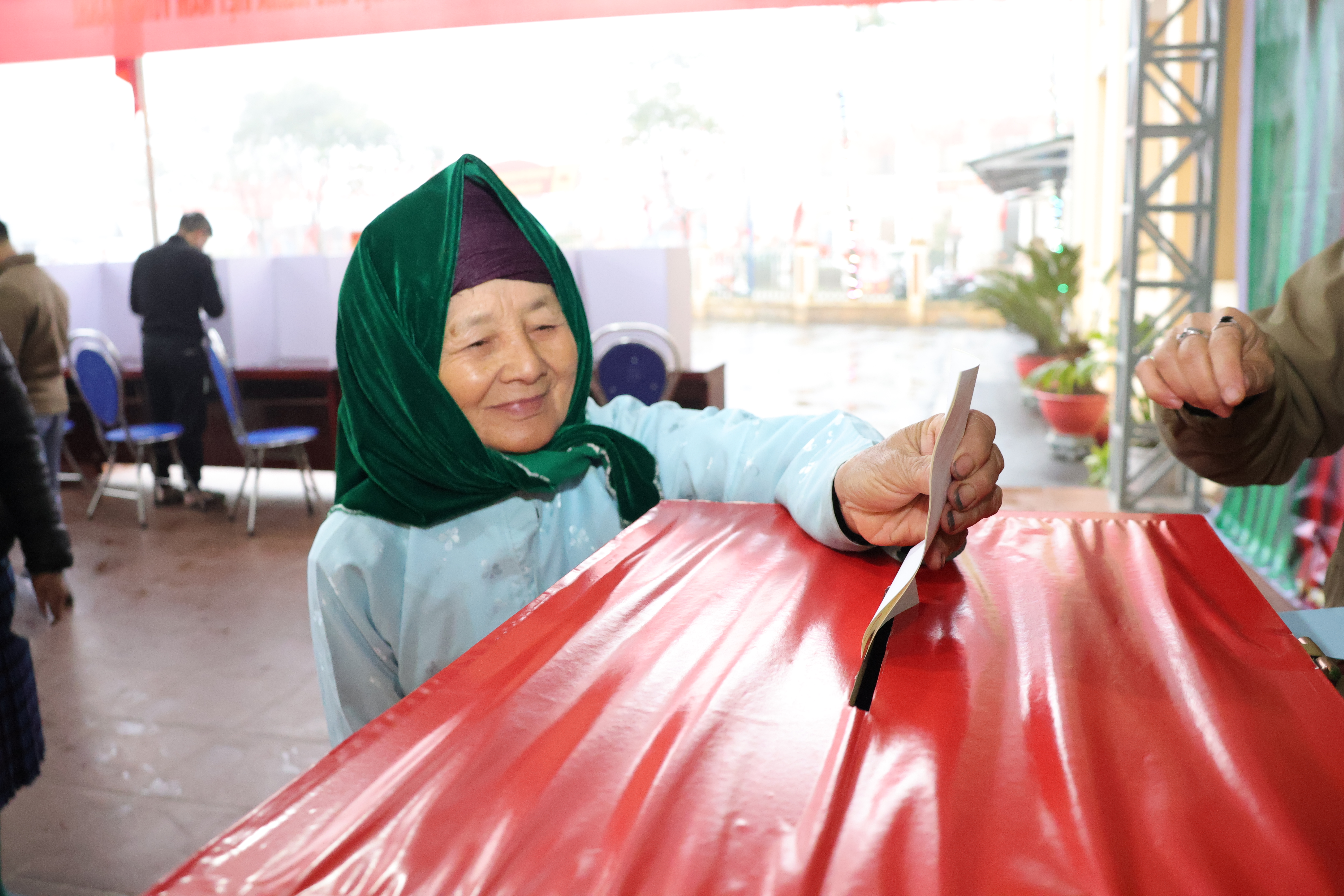 Dù thời tiết mưa lạnh, sương mù dày đặc bao phủ vùng cao, nhiều cử tri cao tuổi tại xã Sủng Máng vẫn tự mình đến điểm bỏ phiếu từ sớm để thực hiện quyền và nghĩa vụ công dân. Hình ảnh những cụ già chậm rãi bước vào khu vực bỏ phiếu đã trở thành nét đẹp đầy ý nghĩa trong ngày hội của toàn dân.