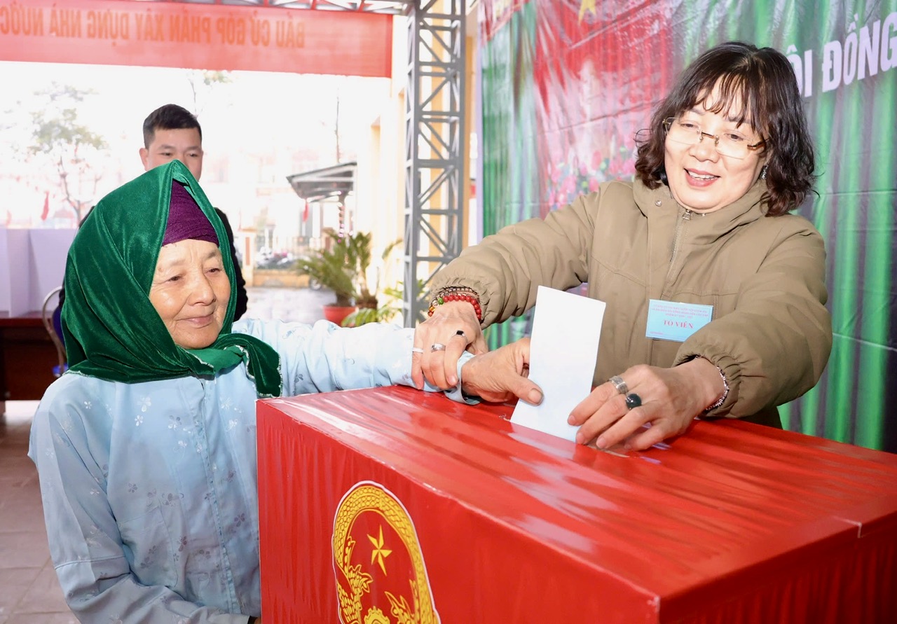 Trong không khí rộn ràng của ngày bầu cử, từ sáng sớm, các khu vực bỏ phiếu trên địa bàn xã Sủng Máng đã tấp nập cử tri đến thực hiện quyền và nghĩa vụ công dân. Giữa dòng người nô nức ấy, hình ảnh những người mẹ, người bà địu con, địu cháu trên lưng lặng lẽ bước vào khu vực bỏ phiếu đã để lại nhiều xúc động, góp phần làm nên nét đẹp bình dị trong ngày hội lớn của cử tri vùng cao.