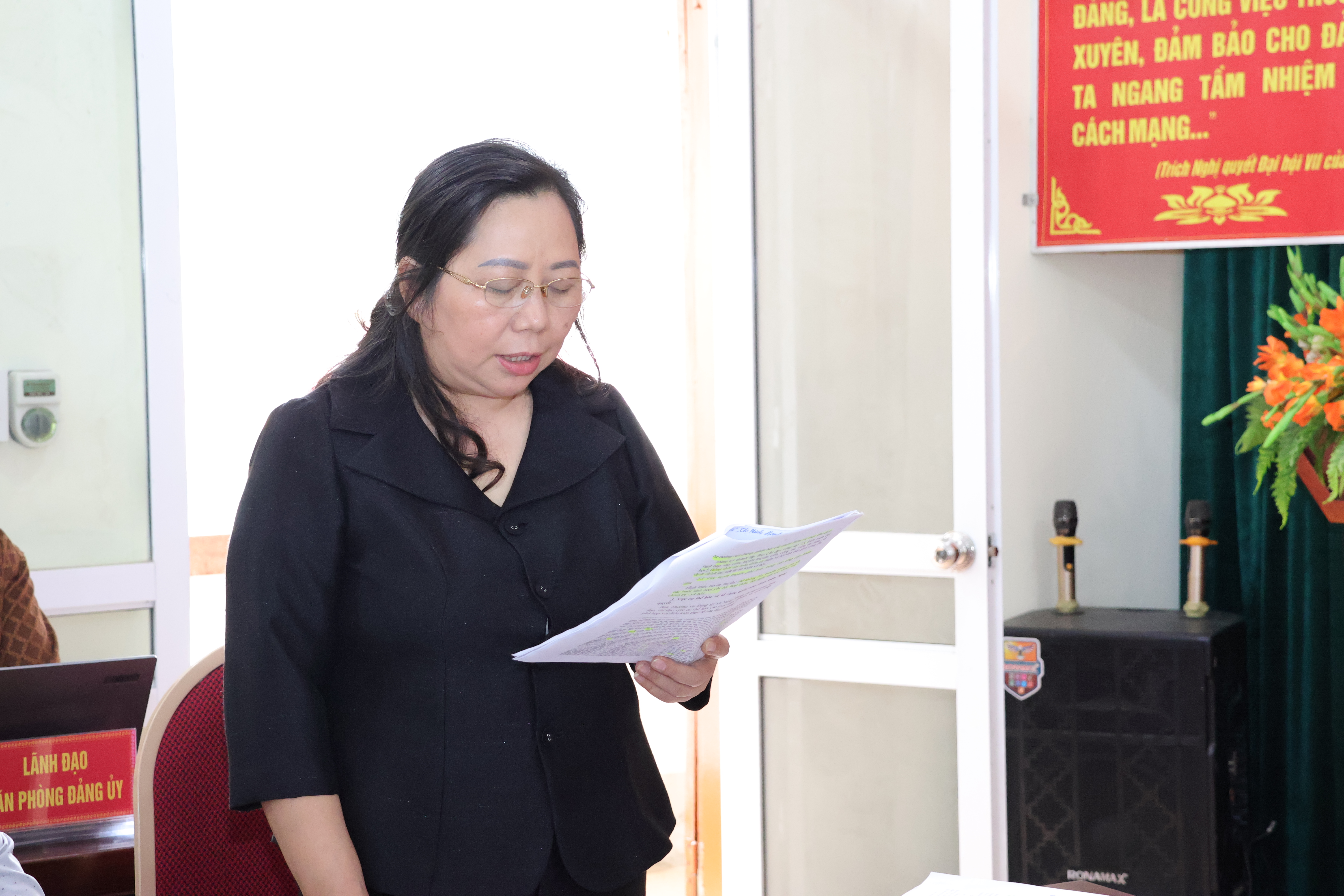 Tại buổi làm việc, các thành viên Đoàn kiểm tra, giám sát tập trung trao đổi, làm rõ việc cụ thể hóa các nghị quyết, chỉ thị của Đảng; công tác tổ chức thực hiện, quản lý hồ sơ, tài liệu và những vấn đề đặt ra từ thực tiễn cơ sở.