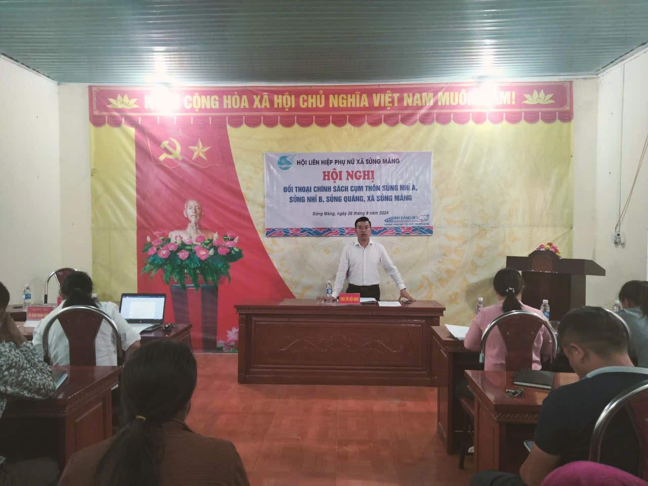 Ban Thường vụ Hội LHPN xã xây dựng kế hoạch tổ chức Hội nghị tiếp xúc, đối thoại trực tiếp giữa Bí thư Đảng ủy với với HV,PN cụm các thôn Sủng Nhỉ B, Sủng Nhỉ A, Sủng Quáng xã Sủng Máng.. Dự có đồng chí Nùng Thanh Sấn - Bí thư Đảng ủy. Thường trực Đảng ủy, Ủy ban nhân dân xã, Hội đồng nhân dân xã, Lãnh đạo MTTQ và các tổ chức chính trị XH. Hội viên, phụ nữ thôn Sủng Nhỉ B, Sủng Nhỉ A, Sủng Quáng.