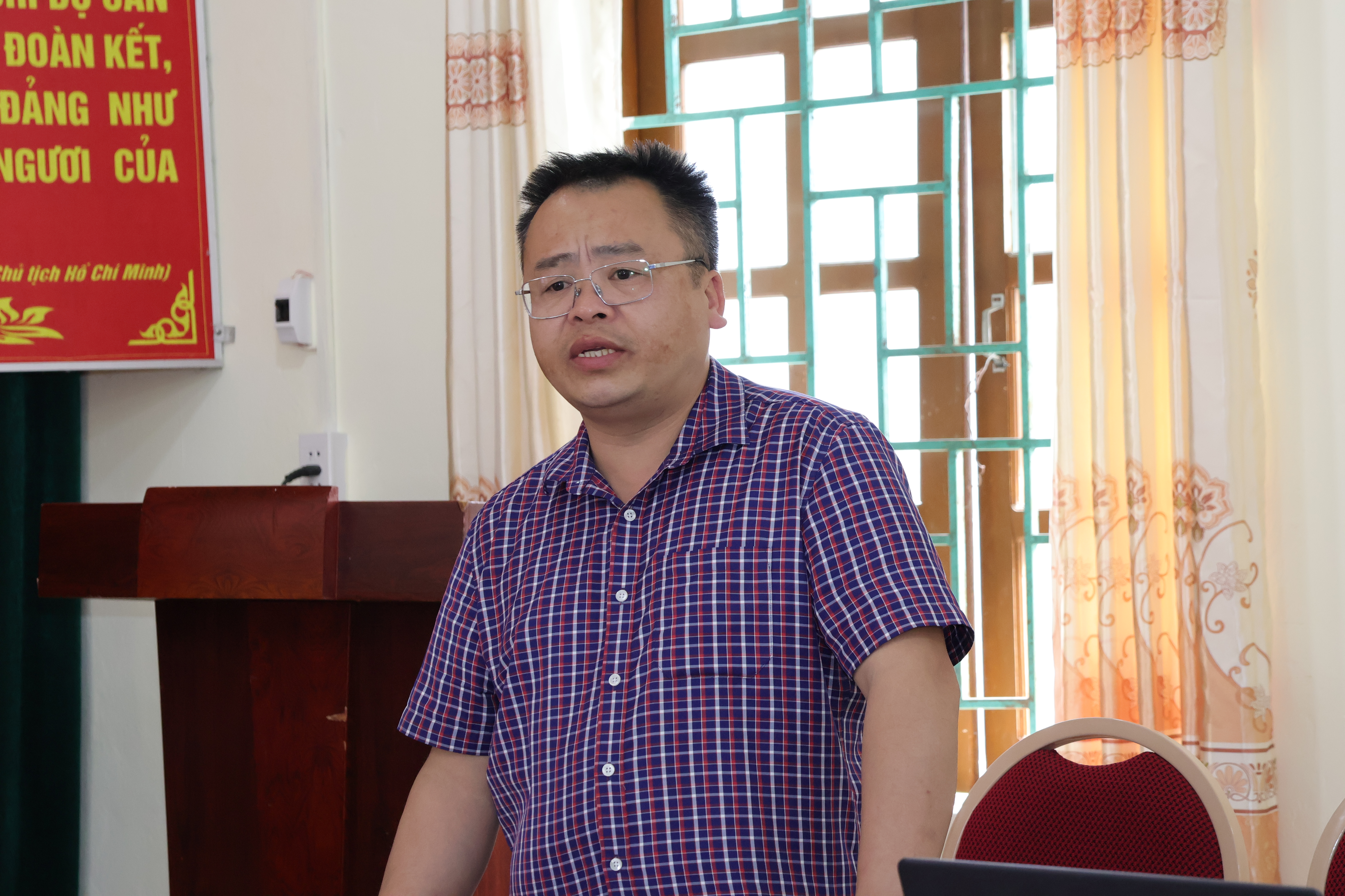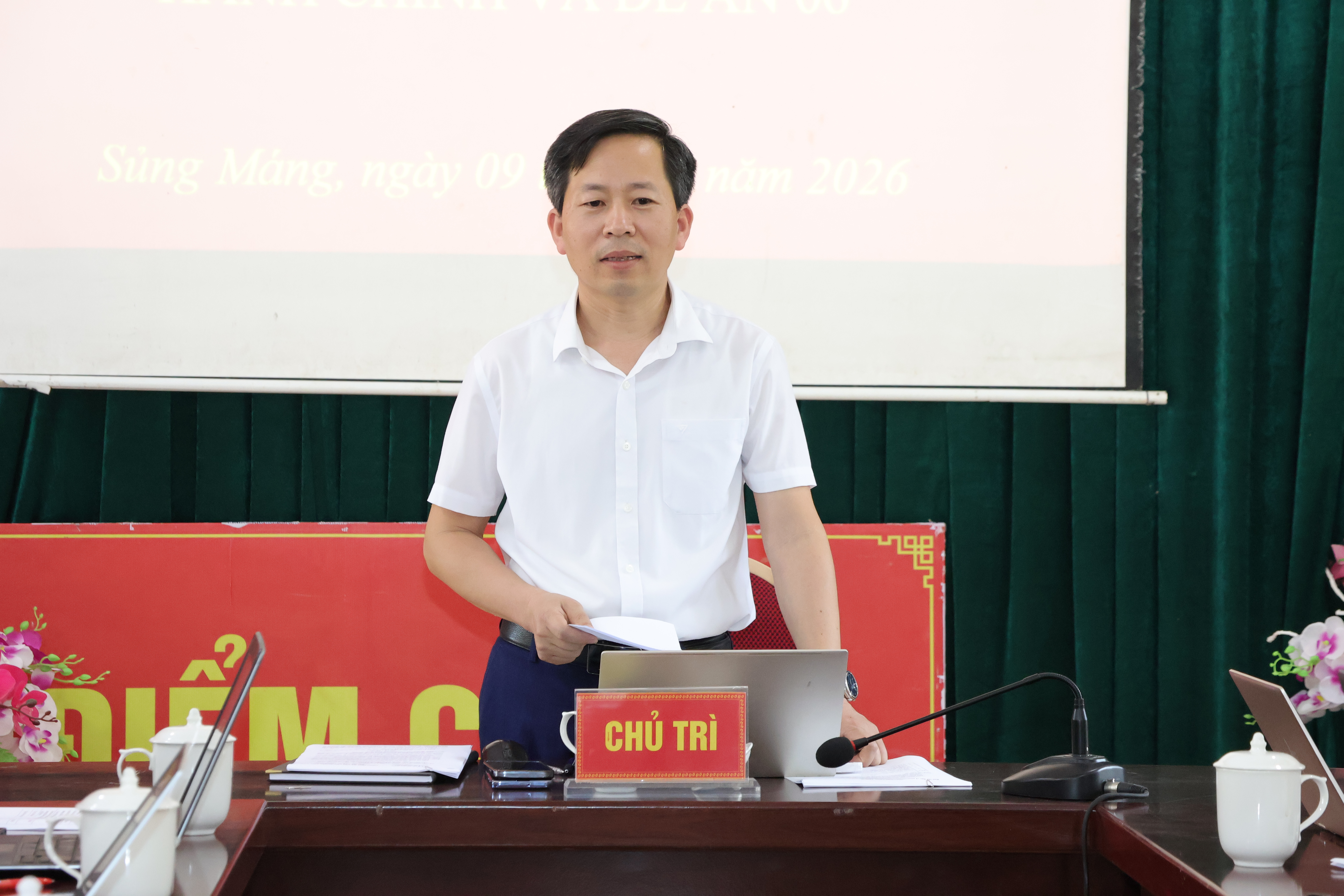 Đồng chí Bùi Văn Thư, Phó Bí thư Đảng ủy, Chủ tịch UBND xã, Trưởng Ban Chỉ đạo về phát triển khoa học, công nghệ, đổi mới sáng tạo, chuyển đổi số, cải cách hành chính và Đề án 06 chủ trì hội nghị