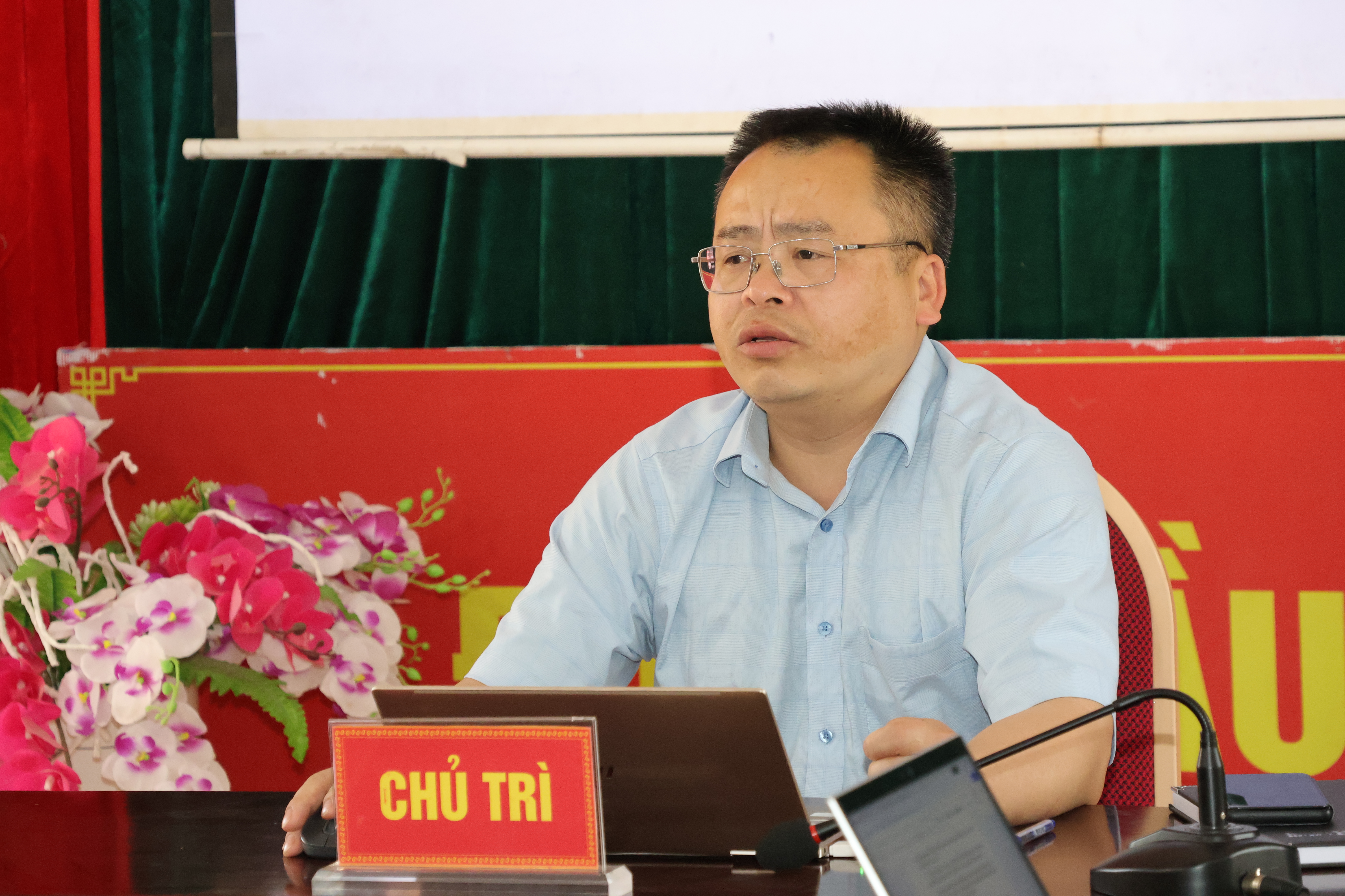 Đồng chí Trưởng phòng Văn hóa - Xã hội thông qua chương trình cuộc họp