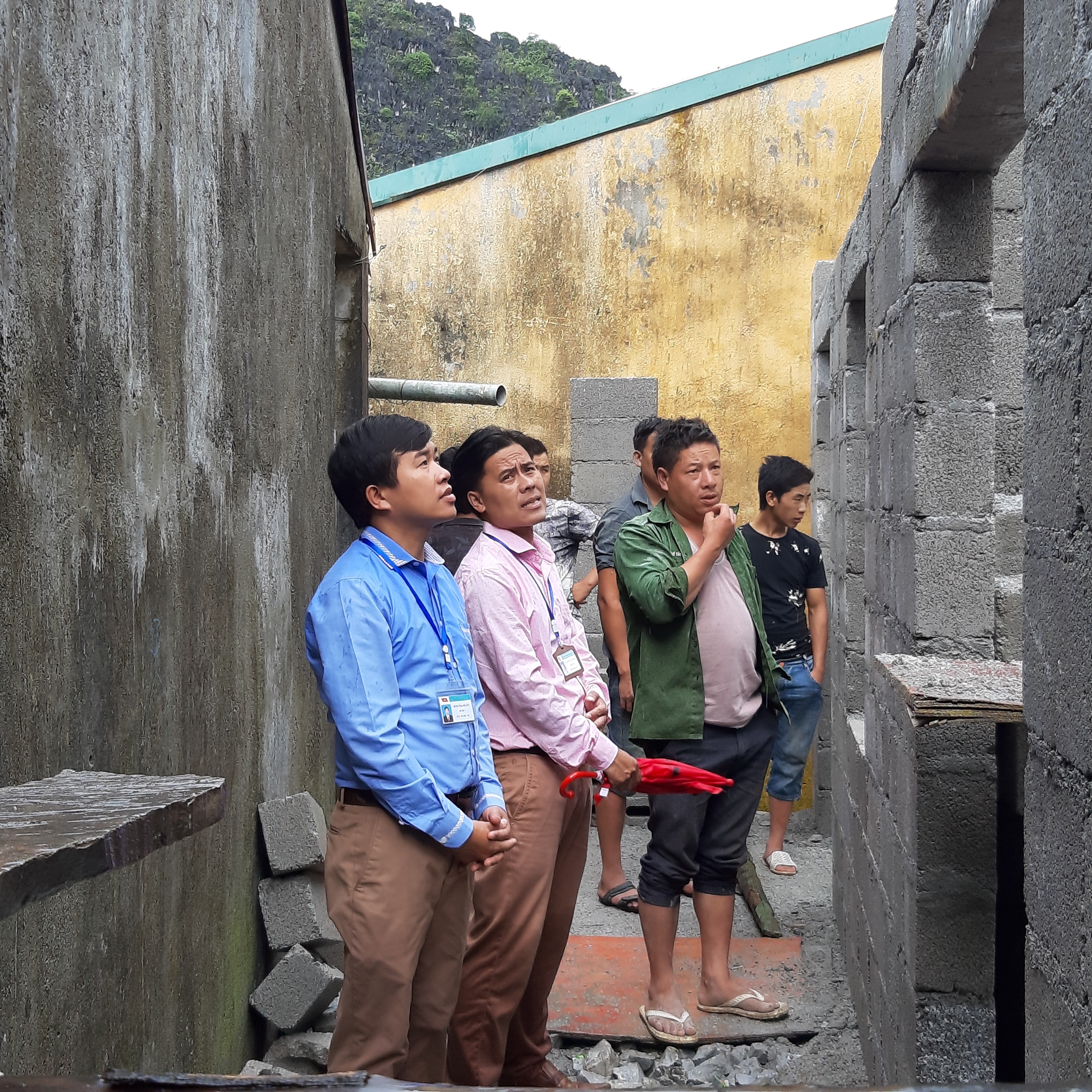 Bí thư Đảng ủy xã kiểm tra tiến độ xây dựng nhà lớp học điểm trường thôn Sủng Quáng